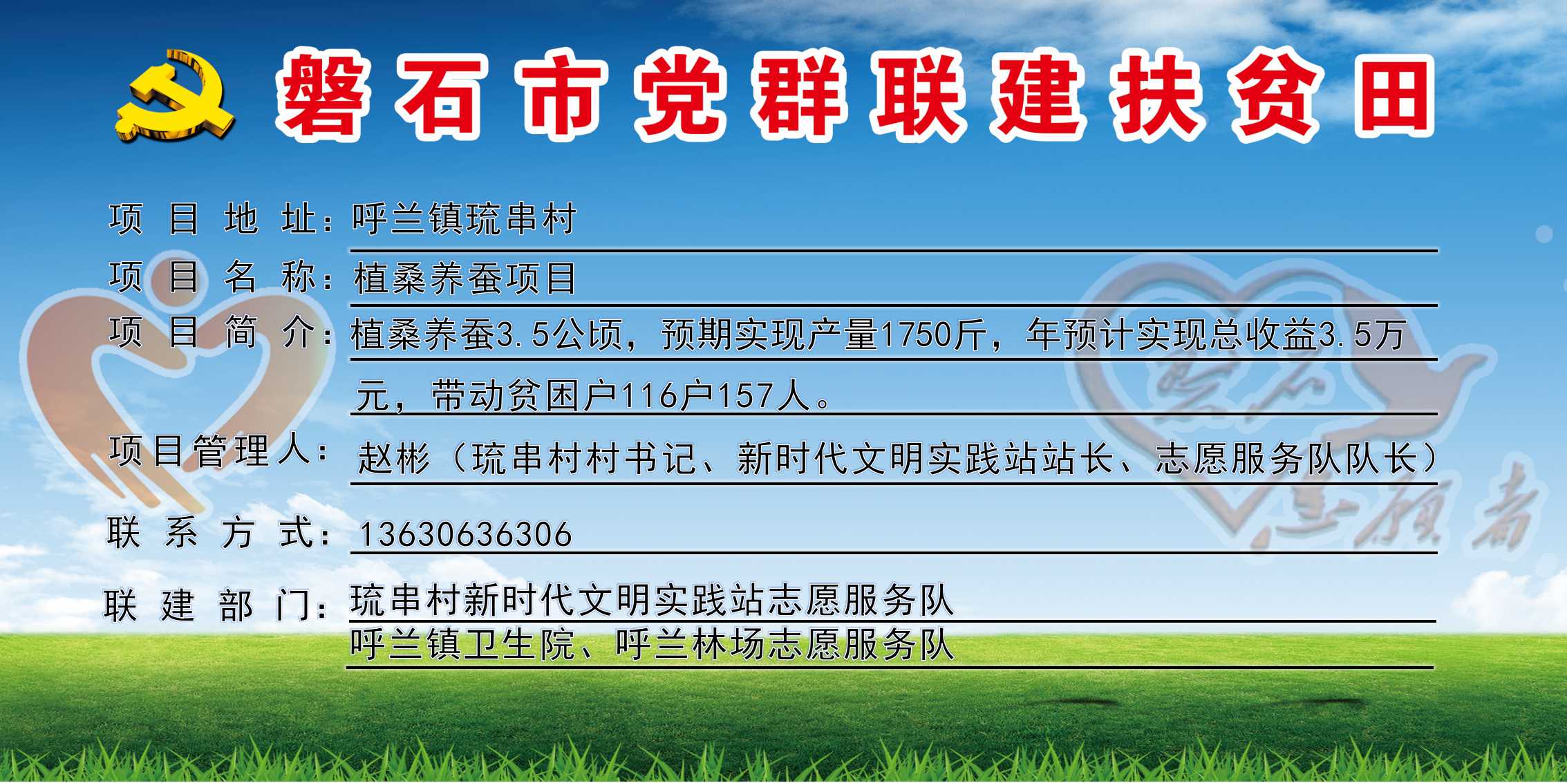 琉串村,全村行政区域11.9平方公里,下辖4个自然屯,现有286户,人口总数1081人,贫困户56户、81人,全村共有1支志愿服务队,志愿者100人,耕地面积741公顷,党群联建扶贫田1块、共3.5公顷,主要经济作物植桑养蚕,村书记:赵彬,联系电话:13630636306。