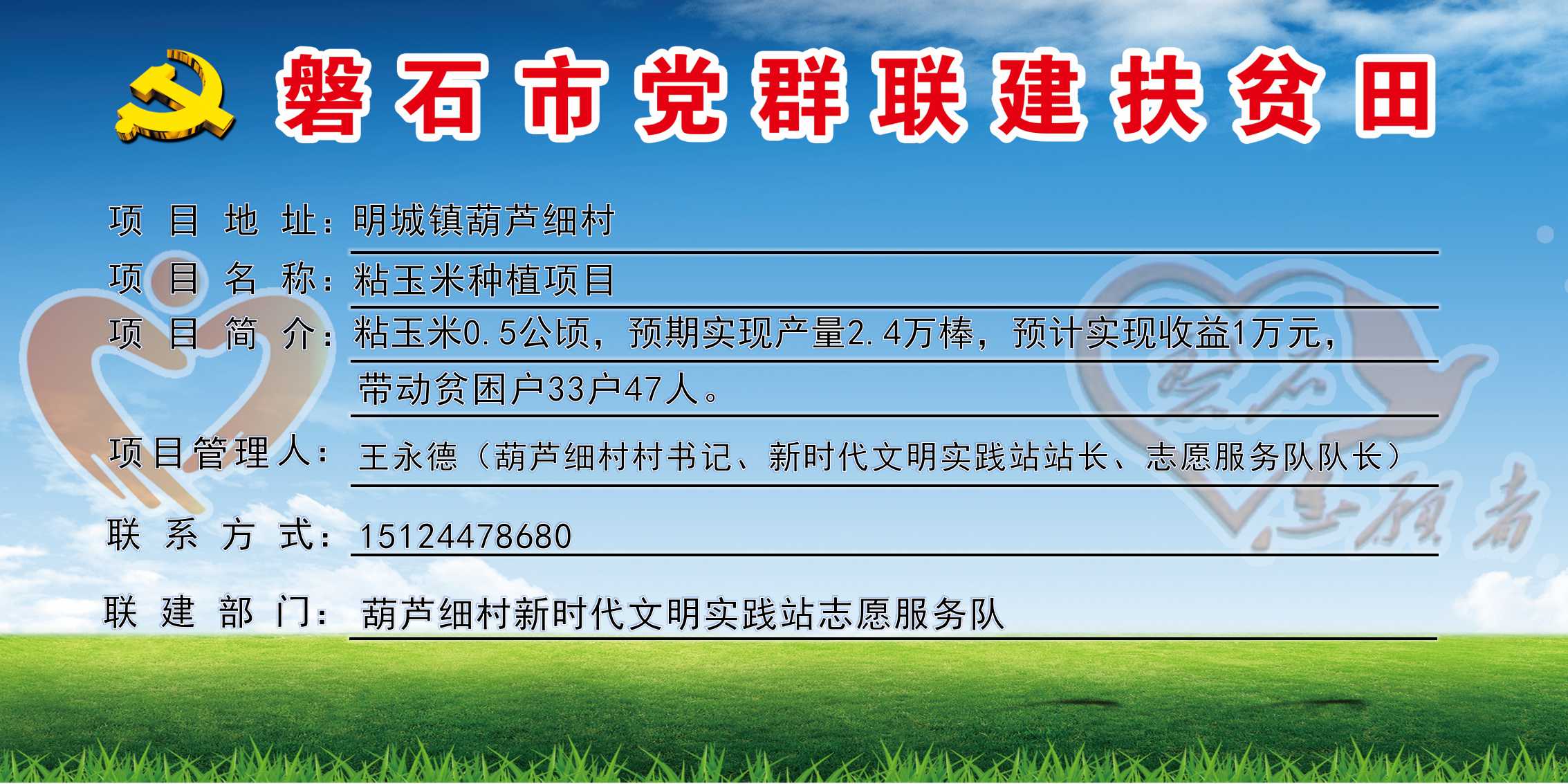 葫芦细村,全村行政区域18.9平方公里,下辖4个自然屯,现有335户,人口总数1518人,贫困户33户、47人,全村共有1个志愿服务队,志愿者613人,耕地面积4878亩,党群联建扶贫田1块、共7.5亩,主要经济作物有玉米、水稻、大豆。获得荣誉:2017年先进基层党组织,2015-2017年度二星级文明村。村书记:王永德,联系电话:15124478680。