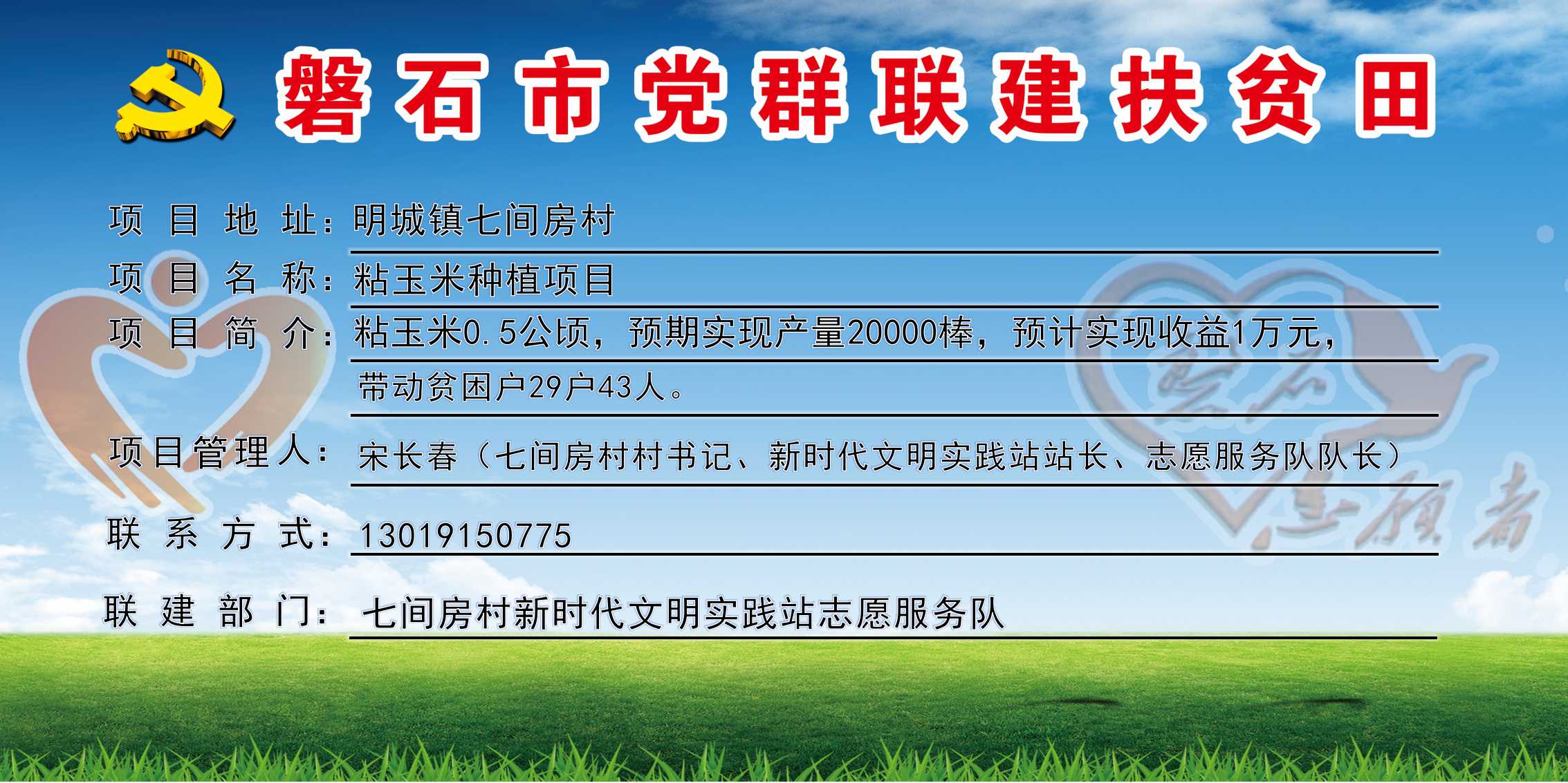 七间房村,全村行政区域16.4平方公里,下辖3个自然屯,现有325户,人口总数1524人,贫困户29户、43人,全村共有1志愿服务队,志愿者280人,耕地面积4996.5亩,党群联建扶贫田1块、共5亩,主要经济作物有玉米、水稻、大豆,村书记:宋长春,联系电话:13019150775。