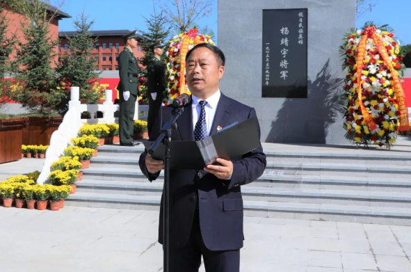9月18日,我市在红色教育基地隆重举行纪念“九一八”事变爆发暨中国共产党创建抗日武装91周年主题活动,教育和警醒后人不忘那段屈辱抗争历史,珍视来之不易的和平,继承先烈遗志、永葆初心使命,赓续红色基因、厚植爱国情怀,激励中国革命老区、东北抗联创建地的担当作为,将伟大的东北抗联精神、杨靖宇精神化作推动工作的强大动力,为全面建成社会主义现代化强国贡献力量。省文旅厅一级巡视员金旭东,省委党史研究室副主任王宜田,吉林市副市长王石红等省、吉林市相关领导,磐石市委书记于技群,市人大常委会主任张永福,市政协主席邢红梅,杨靖宇将军曾孙马铖明,在家的市级领导,市直部门单位、各乡镇街区主要领导及社会各界代表参加活动。市委常委、宣传部部长李英奎主持活动。